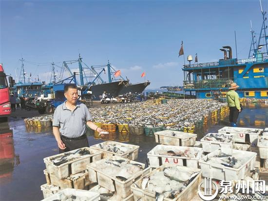 李天培在码头查看海产品 (受访者供图)