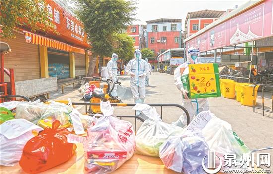 泉州网3月16日讯(记者 廖培煌 林劲峰 通讯员 郑玲玲 文/图)疫情发生后,封控区实行“区域封闭、足不出户、上门服务”。封控区内的居民生活保障如何?昨日,记者前往丰泽区东美社区封控区外围、物资配送商场等处实地走访。