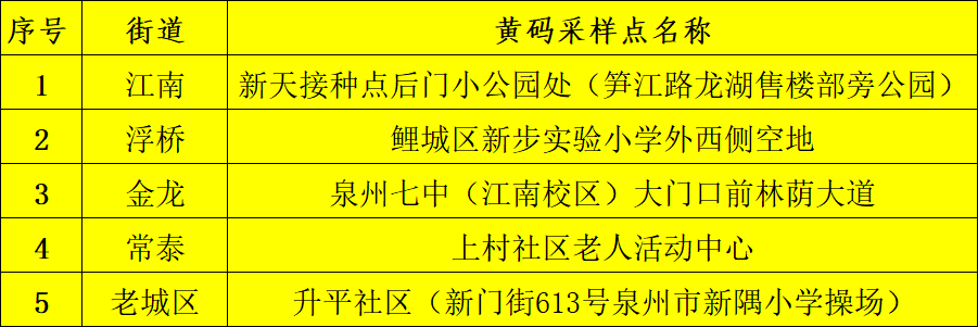 鲤城区黄码人员核酸检测采样点名单