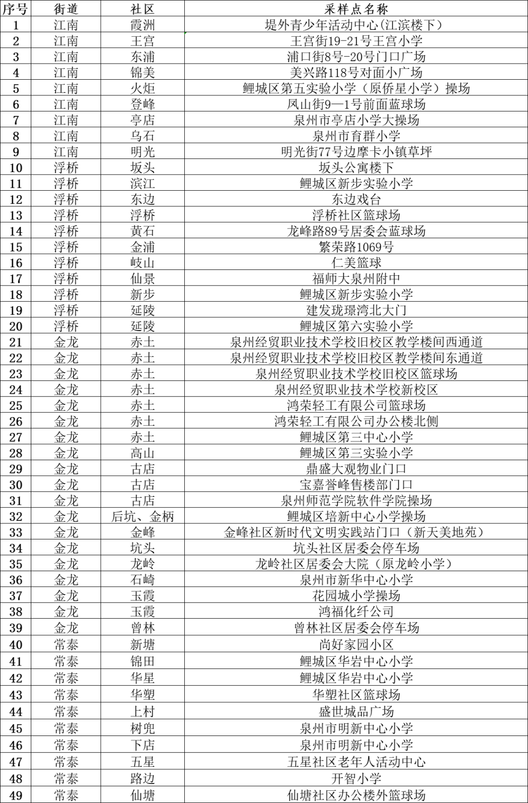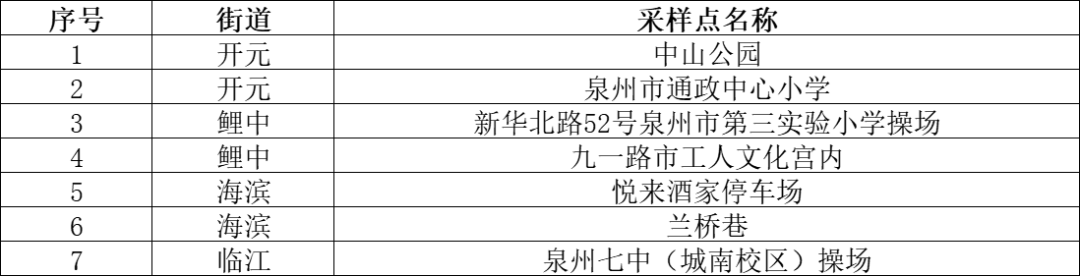 鲤城区核酸检测采样点名单