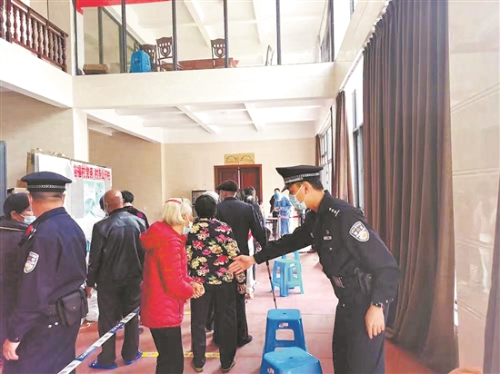 轻拍群众的肩膀,他指了指旁边的塑料凳子……3月14日晚,在安溪县龙涓乡核酸检测点,一位执勤民警正无声地忙碌着。