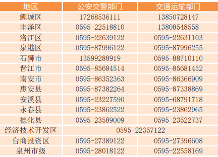 泉州市办理保障民生物资类供应运输车辆通行证热线电话