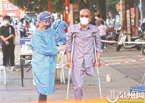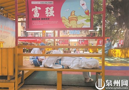 当前疫情防控形势严峻,为了迅速筛查感染人群和切断传播途径,昨日,泉州开展新一轮大规模核酸检测,广大医务工作者、党员干部、社区工作人员、志愿者一起奋战在抗疫一线,他们每天都在超负荷运转,无私无畏、冲锋在前,市民积极配合,社会各界形成合力,筑起疫情防控坚固防线。(记者王柏峰 庄丽祥 吴嘉晓 摄影报道)