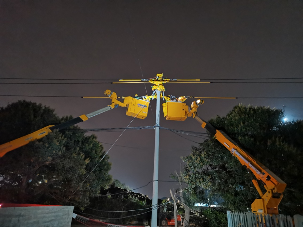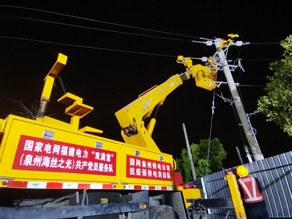 为给快捷健康驿站项目建设腾出空间,国网泉州供电公司组织精干力量,对周边杆线进行带电迁改,在保障项目施工用电的同时,不影响周边2000多户居民正常生活用电。面对紧急任务挑战,国网泉州供电公司带电作业中心迅速成立抗疫保电党员突击队,并在全国劳模、带电作业中心副主任许福中的带领下,第一时间赶赴现场开展带电迁改施工作业,高质量地完成了施工和保电任务。