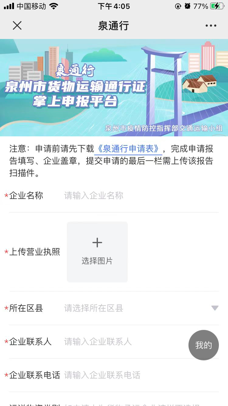 城市按下“慢行键”,运载生活生产物资的车轮却依然需要运转。根据“一断三不断”原则,为了进一步确保抗疫和民生物资运转,泉州移动主动作为,央企担当,与市疫情防控指挥部对接,连夜组织技术人员通宵达旦开发“泉通行”APP——物资运输通行证掌上申报平台,根据车辆通行区域,优先为应急、防疫物资、居民生活重要物资运输车辆赋予“红、橙、绿”三色通行证(码)。