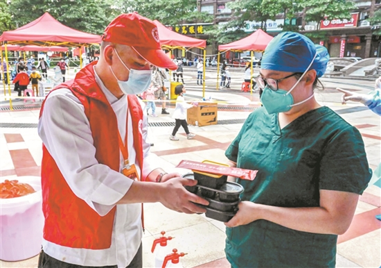 泉州各个角落,昼夜奋战的抗疫一线人员和志愿者们,经常忙得连一顿热饭都吃不上。看到抗疫一线的痛点,泉州晚报社旗下公益机构——泉州市东南公益协会认真研判需求,并精准提出了解决方案。3月15日,东南公益联合丰泽区商贸业行业协会、泉州市餐饮烹饪行业协会、泉州饿了么等发起“同心抗疫·公益捐餐”行动,多家餐饮商家接力响应,一起致敬抗疫一线的最美逆行者,送出一份份暖胃暖心的爱心餐。