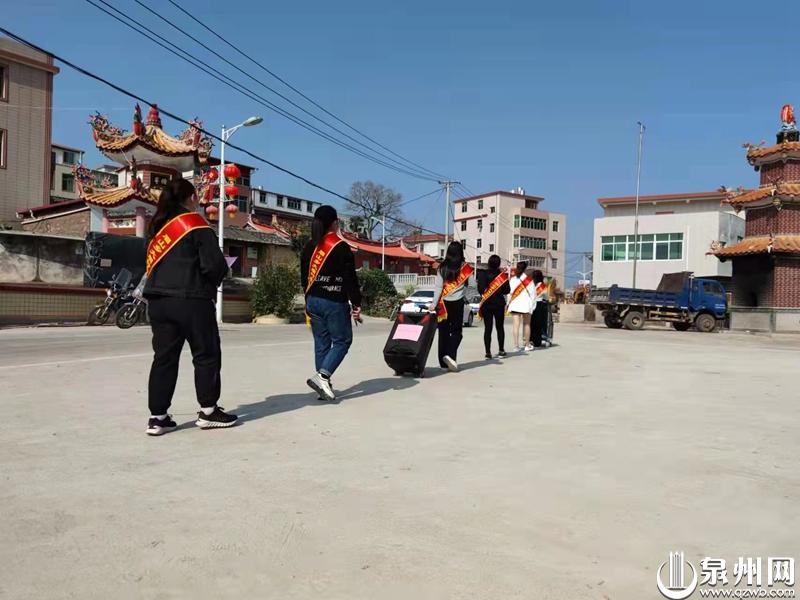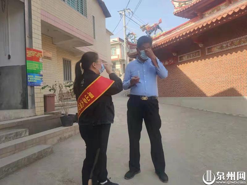 泉州网3月21日讯 (通讯员石倩雯 记者林福龙 文/图)因疫情防控的需要,南安市眉山乡辖区内的公共场所都暂时关闭,虽然每天晚上响起的广场舞音乐停止了,但眉山乡大眉村的广场舞姐妹也没闲着,投身到疫情防控工作中。