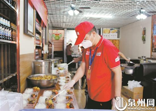 在丰泽工作的新疆维吾尔族志愿者筹办了“民族一家亲”抗疫爱心厨房,并组成红石榴抗“疫”志愿服务队,为疫情一线的工作人员免费供应爱心午餐、晚餐。(郑晓岚 摄)