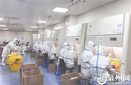 泉州网3月23日讯(记者 苏凯芳 通讯员 万馨璟 曾婧琦 陈丹红 陈玮铭 文/图)连日来,泉州大规模人群核酸检测一轮接着一轮,无数的样本被迅速送到省、市、县各级方舱实验室、城市核酸检测基地、各地疾控中心实验室。在这些地方,“全副武装”的检测人员24小时不间断进行核酸标本检测工作。
