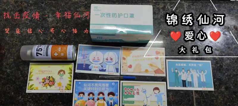 南安市霞美镇仙河村为村民发放爱心大礼包,包括自己设计的抗疫明信片、口罩和消毒酒精等。(南轩 图)