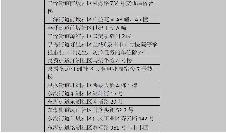泉州网3月27日讯(记者 张沼婢)2022年3月27日,福建省泉州市鲤城区临江街道伍堡社区伍堡旧街北至四堡街、南至义全街、西至伍堡新街、东至中山南路区域调整为高风险地区。鲤城区鲤中街道和平社区北至东街、南至玉犀巷、西至中山中路、东至观东巷区域调整为中风险地区。晋江市、南安市、永春县新增多个封控区(详见附件2)。