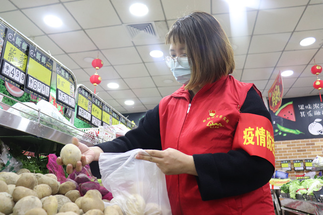 第二天上午9时,装满生活物资的小分队就出发了。“每包里面有5种蔬菜,每种菜的单价、重量、总价都有标注。每户一人下来扫码支付、领取物资,每人间隔2米。”商超物资保障志愿服务队队长说,“大家都很配合,工作起来也很顺心。”