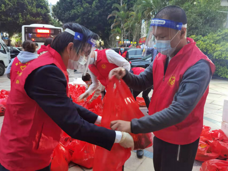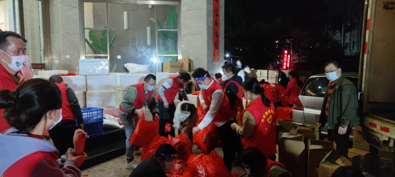 暮春的泉州,夜晚凉意习习。3月29日,夜色中,泉州五矿大厦的楼前,却呈现出一片温暖的“志愿红”。来自招行银行泉州分行的10余位志愿者,身穿红色志愿者小马甲、戴着面罩口罩、弯着腰不停地忙碌着,卸货、分拣、装袋、搬运,每个人紧密配合,只为让泉州中心市区29个城中村社区的困难群众能早点收到这批免费的生活物资。