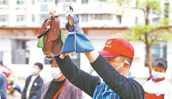 连日来,安溪县各级各部门运用电视、网站、微信、乡村大喇叭等媒介开展防疫宣传,创作接地气的闽南四句、歌曲等文艺作品解读防控知识,提高群众自我防护意识和防护能力。图为凤城镇新时代文明实践所文化志愿者用群众喜闻乐见的木偶戏表演形式宣传防疫知识。(黄梁山 许艺燕 摄)