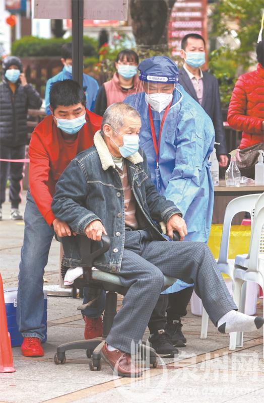 协助行动不便的老人测核酸