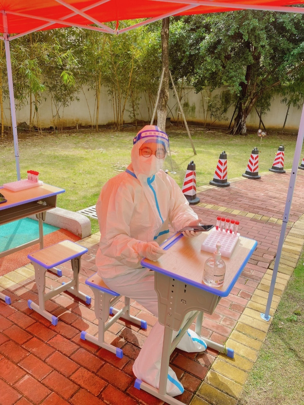社区核酸检测点志愿者:郭诗佳(泉州分行运营管理部员工)
