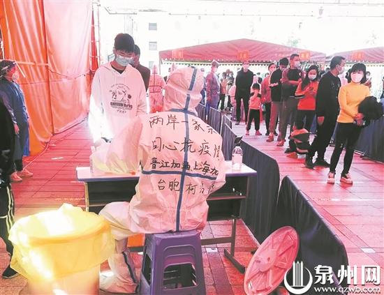 泉州网4月7日讯 (记者黄祖祥 张晓明 通讯员郑玲燕)昨日没有核酸采样的任务,在晋江开牙科诊所的台胞医师柯鸿德终于可以好好休息。从3月26日到4月5日,他以“大白”的身份,参加了晋江六轮全域全员核酸检测,完成超过1万人次的采样。“先辈们在100多年前从晋江去台湾拓荒谋生,现在我要带着孩子们回来服务家乡……”柯鸿德说,这段日子身体虽累,但心却是暖的。