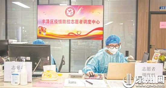 调配志愿者参与混管人员流调、核酸检测、数据录入……“丰泽北峰街道只有10名教师志愿者,缺人。”“明天田安大桥下的卡口需要有人值班”……志愿者调度中心里的工作人员不分昼夜地忙碌着,全方位地为抗疫一线提供志愿服务。