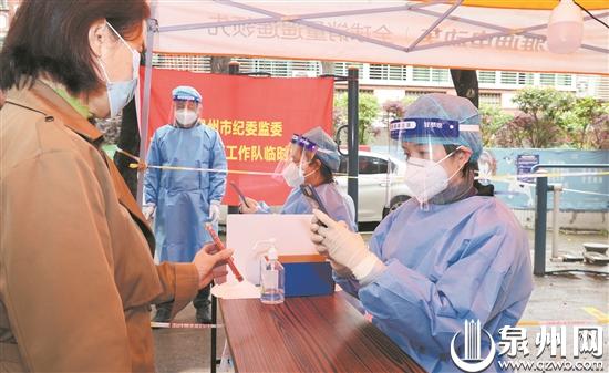 3月13日本土疫情发生以来,泉州市纪委监委坚决落实党中央决策部署和省委、市委工作要求,积极响应市委党员干部下沉村(社区)参加疫情防控工作的号召,组织3批次74名机关、派驻机构干部下沉5个重点地区,全力以赴保障社区一线防控任务落细落实,为打赢疫情防控歼灭战贡献力量。