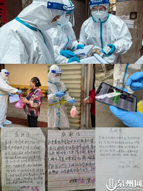 云山社区作为城中村,人口密集、结构复杂、外来租户多、管理难度大,是疫情防控的难点重点之一。为此,工作队为了掌握这近7000人的居民区每户人员的基本信息和家庭结构,每天挨家挨户进行入户排查登记,并进行多次复核。每日配合入户采集核酸样本、配送生活防疫物资、收运生活垃圾、进行楼栋消杀等。除了平日的生活所需,居民还有一个主要诉求就是买药,队员们都会详细地登记药品信息,再帮其跑腿购买送至家中。对有些家庭困难的居民,小组队长林锦阳、欧阳铮、队员王师竹等人都会密切关注他们的生活,主动自掏腰包,购买蔬菜、面包、蛋、肉等提供实实在在地帮助,为此工作队收到好几分居民手写的感谢信。