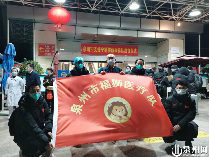 许荣誉介绍道,在泉州抗疫一线,涌现出多支以“福狮”命名的队伍。在闽南,狮子象征着吉祥如意,此次核酸采样队伍命名为泉州市福狮医疗队,希望以“‘狮’来运转”的美好寓意,给宁德人民带去泉州的祝福。“我们相信出征的队员们一定会发扬勇敢、协作的‘福狮’精神,圆满完成任务。”