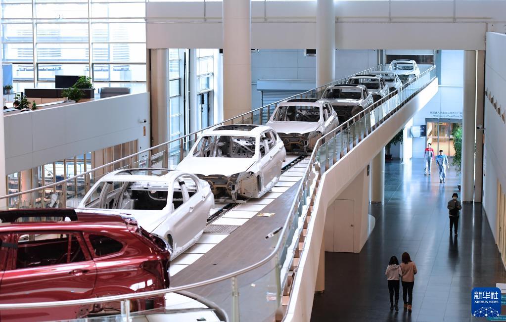 2月16日,在华晨宝马沈阳铁西工厂,生产中的车辆穿过办公区。新华社记者 杨青 摄