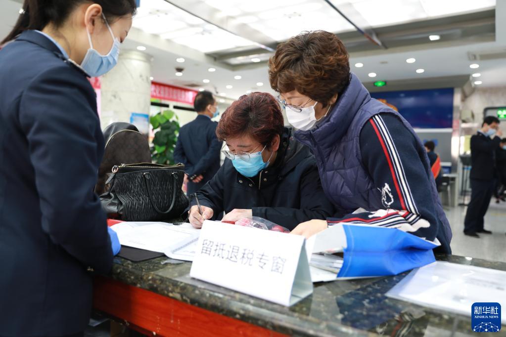 4月1日,天津市和平区税务局工作人员指导纳税人进行小微企业增值税留抵退税操作。新华社发