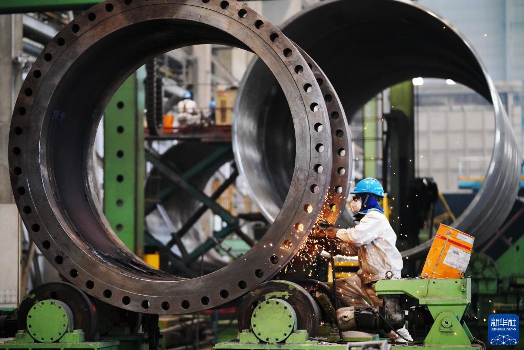4月14日,在哈电集团哈尔滨锅炉厂有限责任公司车间,工人在进行生产作业。新华社记者 王建威 摄