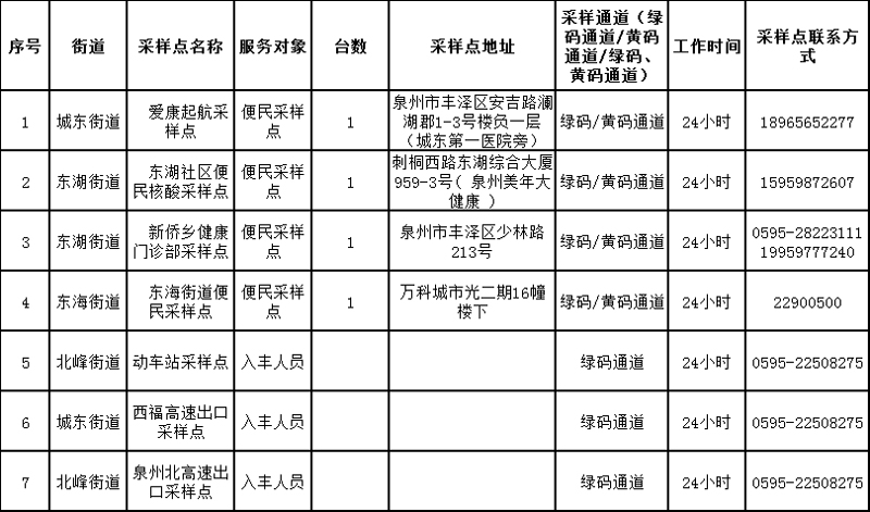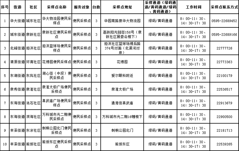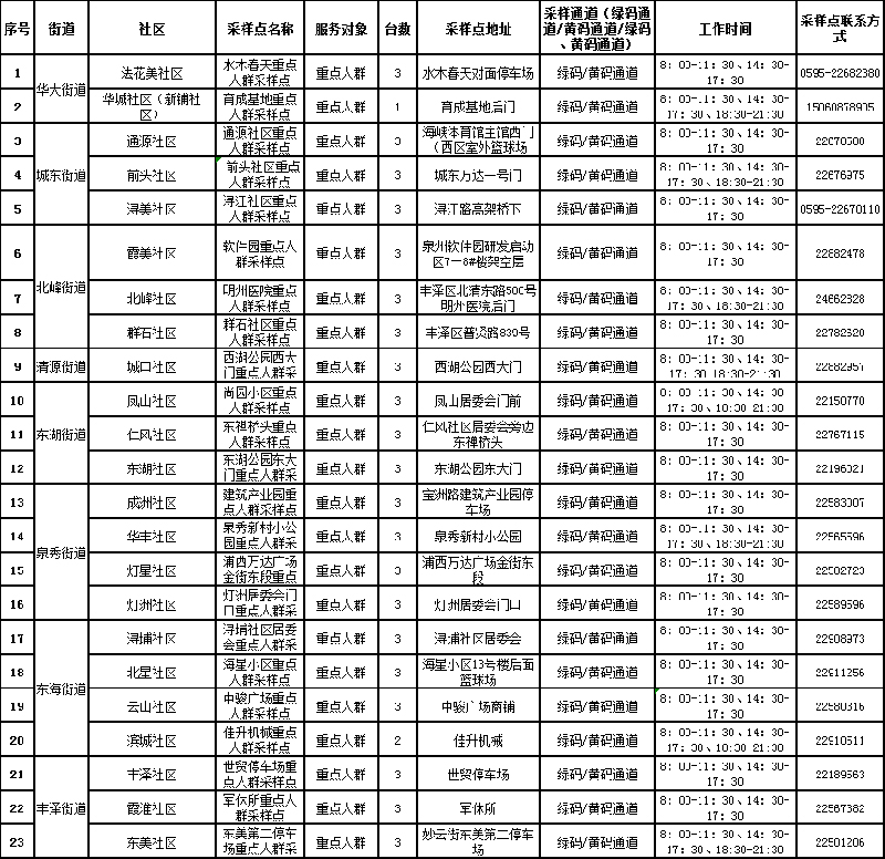 1.全区各重点人群采样点仅对丰泽区重点人群开放,采样对象须凭手机短信通知,按通告频次进行核酸采样;