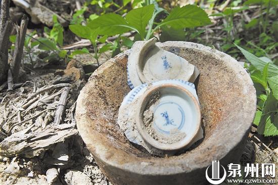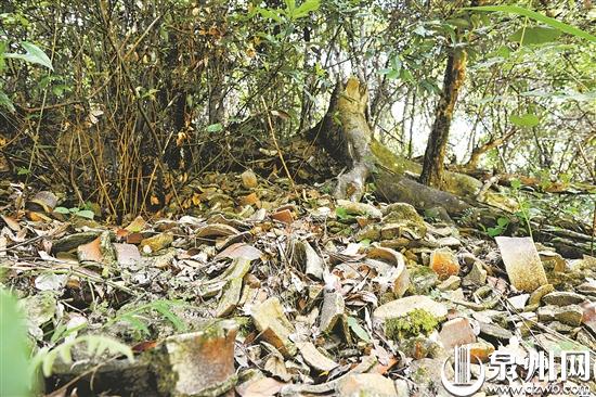 在岭脚村水尾山坡上有个叫“瓷窑垅”的地方,山上有成片的白瓷、青花瓷片及匣钵等烧瓷器具。有些青花瓷碎片,画工娴熟,发色青翠欲滴。二三十年前,村民轻易就能到山上捡一两个完整的匣钵当“狗槽”。村人还称,当时的水碓在离此地不足百米的岭脚溪边。一个以瓷窑为名的地方,到底有几条窑已不可考,但此地曾因瓷而生、因瓷而富是不争的事实。