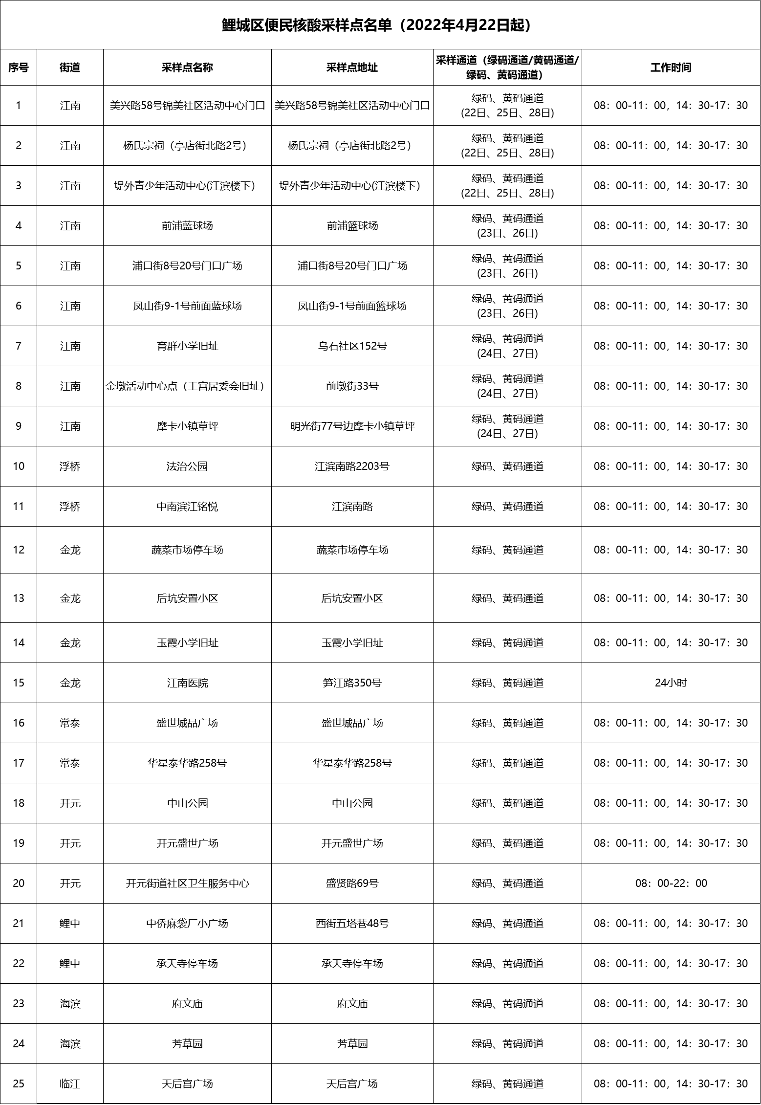 为有序推进复工复产复学,满足广大群众核酸检测需要,4月22日起,鲤城区设置25个便民免费核酸检测采样点,方便群众就近采样。请有核酸检测需求的市民携带身份证,按公布的采样时间就近采样,并做好戴口罩、保持“1米线”距离等个人防护措施。