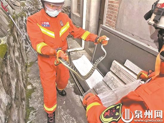 接到蛇扰民警情后,消防员紧急处置。