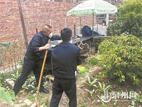 泉州网4月26日讯 (记者陈玲红 通讯员沈志滨 文/图)4月25日上午10时许,南安市梅山镇新兰村老陈家里闯入一个“不速之客”。当时老陈夫妻俩正在屋里准备做饭,忽然听到屋旁的兔子窝里传来上蹿下跳的声音,就赶紧出去看了一下,竟是一条蛇正在窝里追赶兔子。