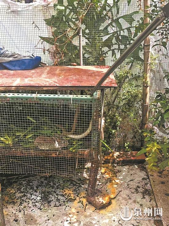 “当时吓了一跳,又不敢上前驱赶。”老陈马上报警,让警察过来帮忙。老陈称自己在屋边搭了一个简易的兔子窝,四周用隔离网围着,里面养着2只兔子,也不知道蛇是怎么闯进铁笼子里的。