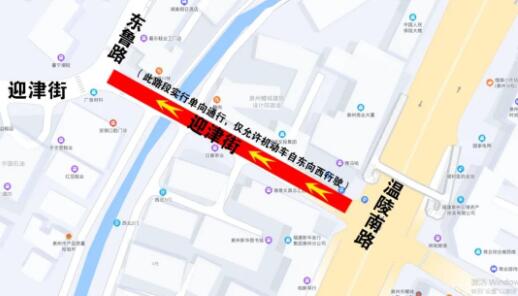 温陵南路与迎津街交叉口至东鲁路与迎津街交叉口的迎津街路段实行单向通行,仅允许机动车自东向西单向通行。(详见下图)