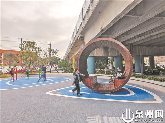 “这里以前是一片废弃空地,私自倾倒建筑垃圾的违法行为屡禁不止,场地里杂草丛生,完全就是一个卫生死角。如今建成了口袋公园,让我们多了一个休闲放松的去处,也解决了卫生问题。”家住附近的市民陈先生说,最让人惊喜的是园区随处可见的闽南童谣。“小时候搬着凳子踮在厝边和阿公阿嬷打节奏唱童谣,曾是童年最快乐的回忆,如今会唱闽南童谣的孩子越来越少。有这样一个小公园,平时带着孩子过来,在玩耍的同时也能受到闽南文化的熏陶,非常有意义。”