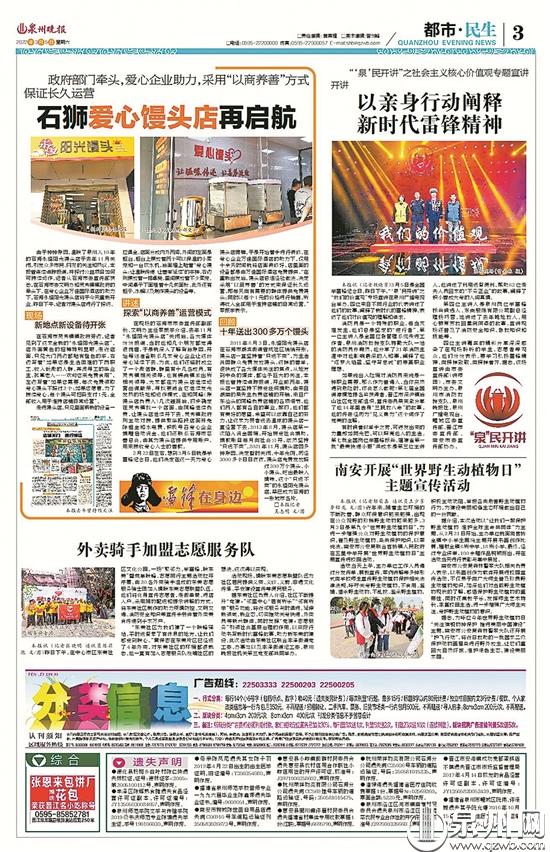 泉州晚报今年3月5日3版关注爱心馒头店