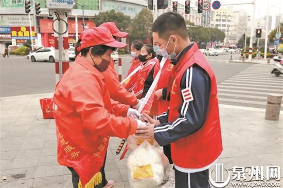 石狮二实小学生上街送爱心馒头和牛奶