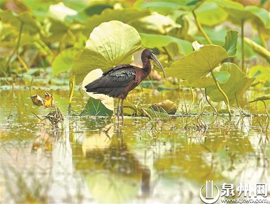 而就在昨日,此前曾来到泉州的国家Ⅰ级保护动物——彩鹮回到了泉州,在晋江被记录到。彩鹮因数量稀少,濒临绝迹,被称为“鸟类大熊猫”。去年8月,彩鹮曾来到泉州,停留了半个月。