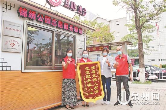 王女士向志愿者送锦旗表谢意