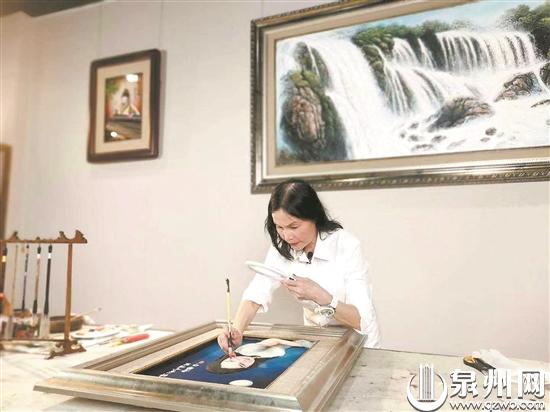 而这,也许是因为吴小锦生于长于石狮“姑嫂塔”下。她出生于通草画世家,爷爷发明了平面通草画,父亲吴为家则是我国立体通草画创始人。父亲把通草画从平面画发展为立体画,从单色画发展到多色画,独创立体通草画艺术品。以胜似国画、胜似彩塑的独特艺术风格,让石狮通草画被誉为“东方艺苑珍奇新葩”。