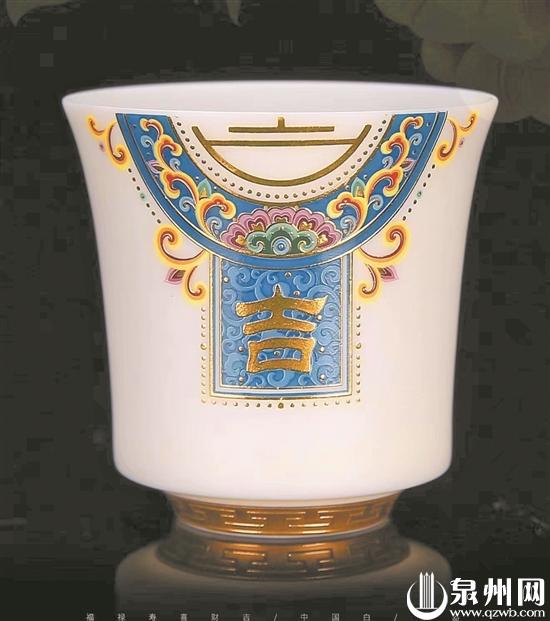 无独有偶,福建省陶瓷艺术大师徐建勇也在书法“福”字上做文章。他选用清代康熙、雍正、乾隆、嘉庆、道光五位皇帝的“福”字书法稿本精心设计成“帝王五福杯”,寓意传统文化中的“五福临门”。此外,他还将这一形式运用到水杯、茶壶之中。“这是‘艺术生活化、生活艺术化’的实践,让人们在日常生活中,感受到更多的福文化。”他说。