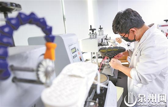 近日,记者来到中国皮革和制鞋工业研究院晋江院(以下简称“晋江院”),在鞋类恒温恒湿实验室、功能性实验室、有机实验室、无机实验室等多个实验室里,工作人员正在忙碌地对样品进行各种实验,以尽快出具产品检测报告给相关企业。