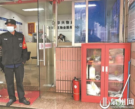 随后,记者来到小区物业管理处了解情况。在物业办公场所前,记者看到一个微型消防站,里面放置着几卷消防水带和两个已经用过的灭火器。