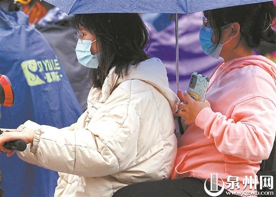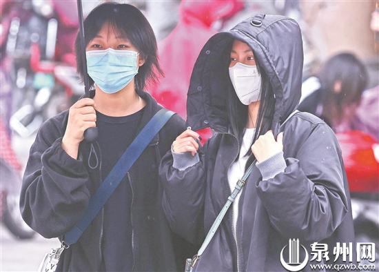 多日阴雨天,气温骤降,泉州街头有不少行人穿上了冬衣。(王柏峰 摄)