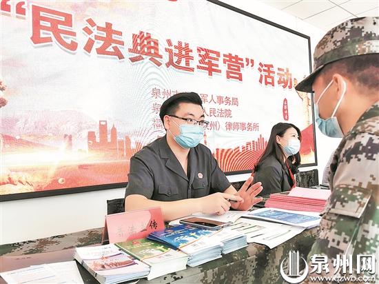 围绕官兵和军属们关心的民间借贷、交通事故、退役安置、购房等问题,泉州市退役军人事务局、泉州市中院工作人员现场进行“一对一”法律咨询问答,专业细致的讲解让官兵“一问就知”“一讲就清”。同时,工作人员现场分发《民法典》《退役军人保障法》《军人地位和权益保障法》《国家安全法》《法律援助法》等相关法律宣传材料,通过精美图册让官兵“一册知晓”“一图读懂”,营造崇军拥军的良好氛围。