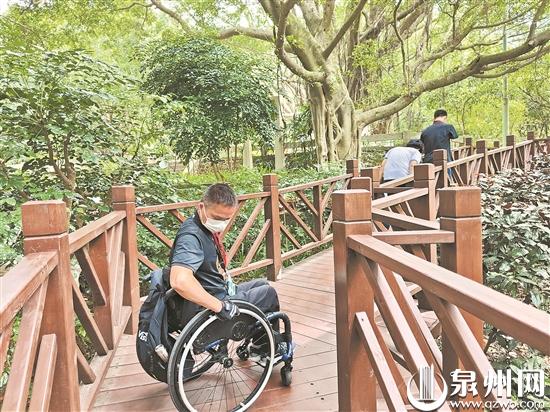 在去年建成投用的鲤城区智慧体育公园里,残疾人督导员体验了智能健身驿站、健康步道、无障碍卫生间等设施。大家表示,体育公园的各项设施覆盖全年龄段群体,智慧化设备不仅实现运动量化,也增加了运动乐趣,建议无障碍卫生间门距再大一些,合理设置无障碍停车位,方便坐轮椅的群众到智慧体育公园活动。