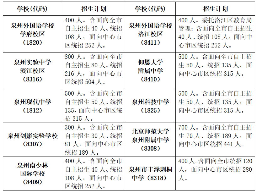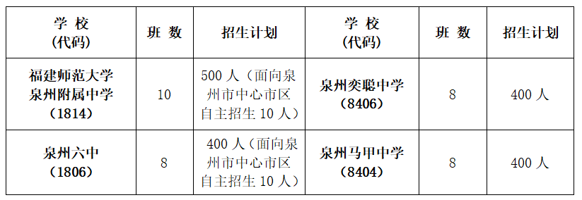 3.泉州市中心市区七所省一级达标高中录取。按照统招生、定向生批次依次录取。