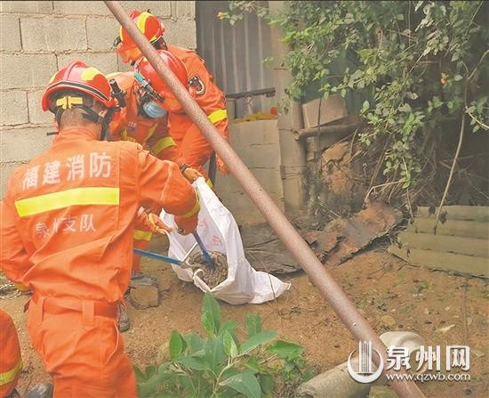 泉州网5月26日讯 (记者傅恒 吴文霞 王韬 文/图)5月25日中午12时47分,台商区洛阳镇一居民养殖场内有一条蟒蛇。台商洛阳消防救援站接到群众报警后,立即出动1车7人前往处置。