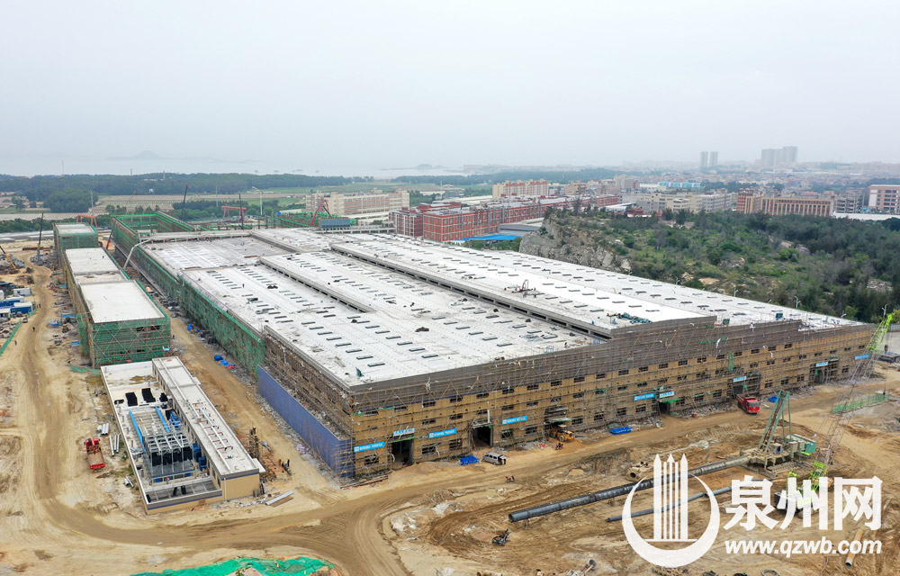 石狮市建新轮胎项目,长度448米、宽度150米的工矿胎车间预计今年7月建成投产。(张九强 摄)